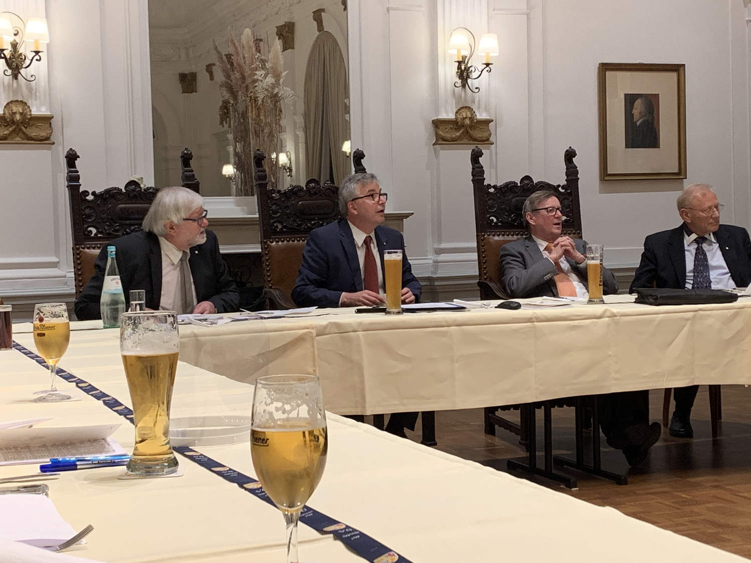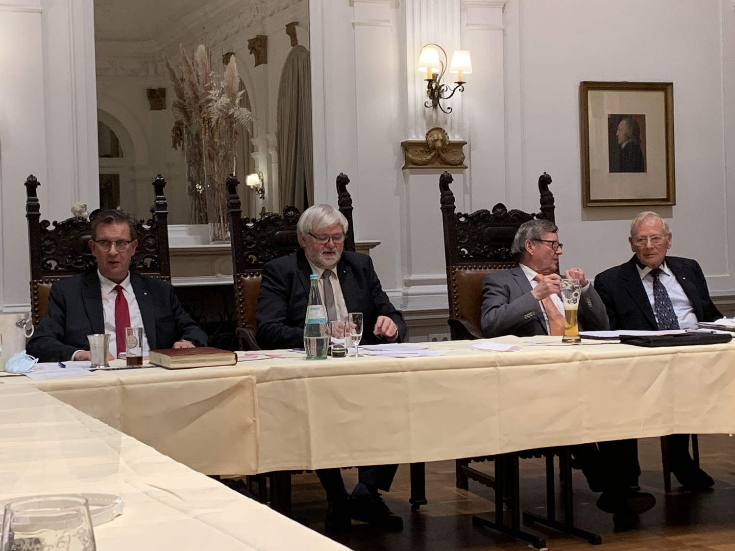 Am 20. Dezember 1798 setzten sich also elf Herren aus Bergisch und Märkisch- Langenberg zusammen. Und sie begannen damit, eine Satzung für die gerade aus der Taufe gehobene Vereinigte Gesellschaft zu verfassen. Etwas über zwei Wochen darauf, am 5. Januar 1799, hatten sie dann ihre „Gesezze“ ausgearbeitet. Und damit einstimmig die erste Satzung der VG als eine Herrengesellschaft beschlossen. Die Gründungsmitglieder waren neben Kaufleuten und Fabrikanten ein Arzt, ein Apotheker, ein Rechtsanwalt und ein Wirt.
